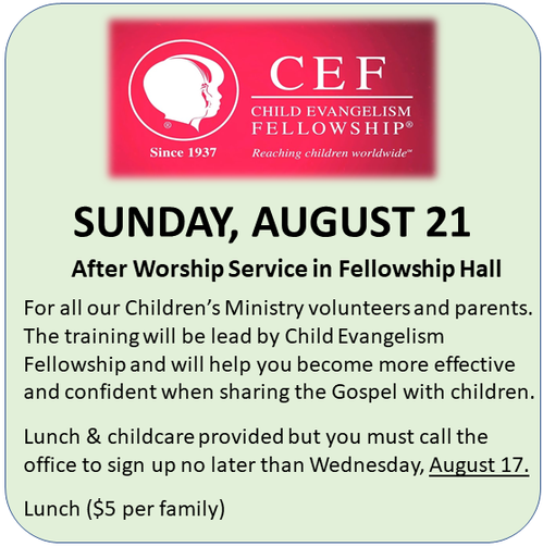CLICK ON THE PICTURE BELOW TO REGISTER FOR THE CEF SHARING THE GOSPEL WITH CHILDREN TRAINING