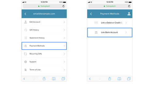 3. Once your bank account is successfully linked, you may begin using your bank account as a payment method for your gifts!