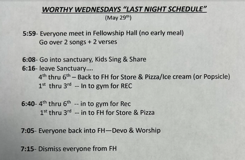 Parents-please watch this short video and check out the information below about Worthy Wednesdays and other upcoming Kid's Events.